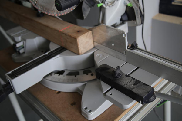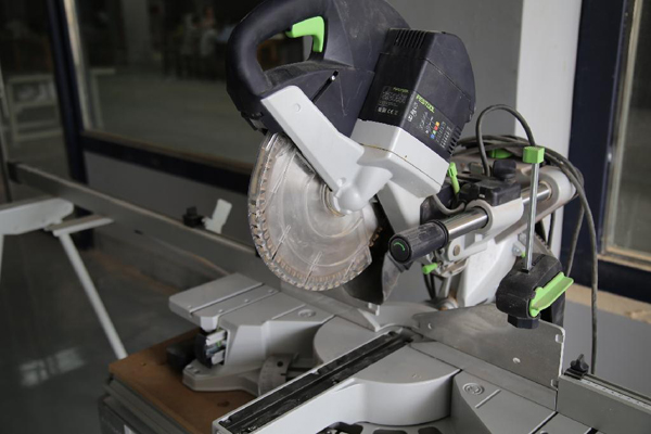 这一款设备就是费斯托木工设备中的明星产品——KS120切割锯。它的下锯方式是由手持把手向下方切割,切割的角度以及行程都可以根据需求随意改变。